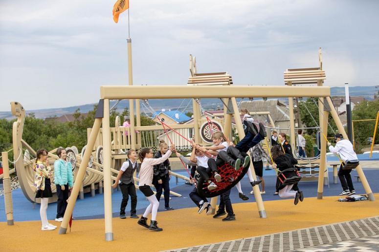 На территории сквера построили скейт-парк, детскую и спортивную площадки и даже амфитеатр. Кроме того, там создали доступную среду для людей с ограниченными возможностями здоровья.