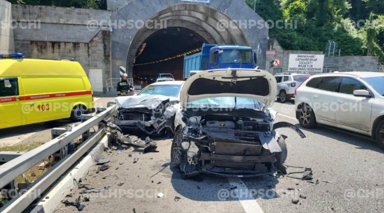 Так, на кадрах, снятых очевидцами, видно, что ДТП произошло в районе тоннеля на объездной в Сочи. Судя по видео, в аварии пострадали три транспортных средства.