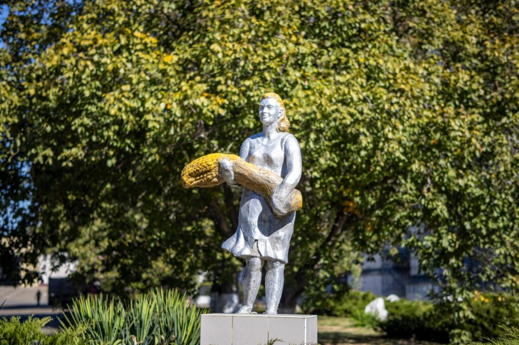 Один из самых популярных образов советской эстетики — колхозница как женский образ трудового героизма. Такой памятник сохранился на территории Усть-Лабинского элеватора. Девушка со снопом пшеницы вот уже более полувека встречает сотрудников одного из самых знаковых предприятий района. Символика женского начала в советском искусстве крайне значима: колхозница становилась символом не только трудолюбия, но и новой социальной роли женщины. Скульптуры такого рода обычно наполнены романтическим пафосом, в них угадываются черты советской Венеры — не античной богини любви, а богини урожая, силы и созидания. Сегодня этот памятник — не идеологический символ, а скорее, эстетический и исторический акцент. Его сохранность на территории действующего элеватора говорит о внимании компании к преемственности: та же земля, те же зерновые культуры, та же цель — накормить страну, но уже в новых экономических реалиях.