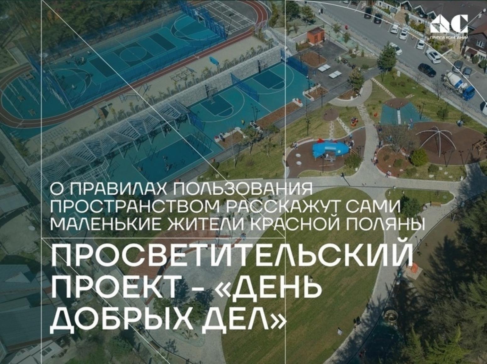 В сквере “Горный” на Красной Поляне в субботу, 8 июня, состоится просветительский проект “День добрых дел”. Организует мероприятие краснополянский ТОС.