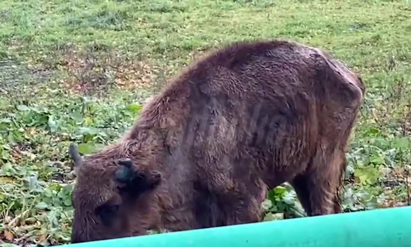Рядом со взрослыми парнокопытными находился маленький зубрёнок, документов на которого, как утверждается, не было.