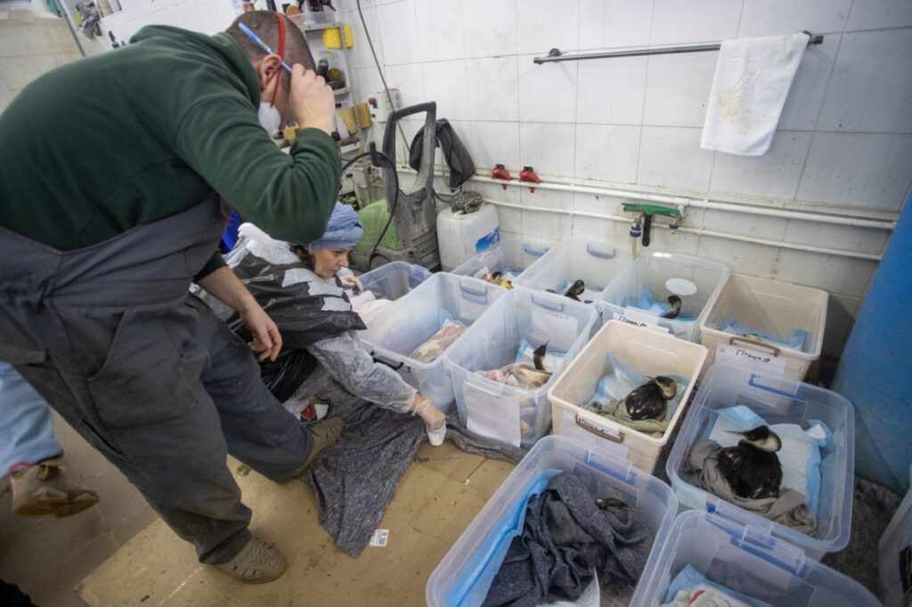 В Анапе третьи сутки продолжается работа волонтерского центра по спасению птиц, пострадавших от вылившегося из танкеров мазута. За все это время в центр поступило 247 птиц, из которых 17 погибли — часть в дороге, часть в центре.