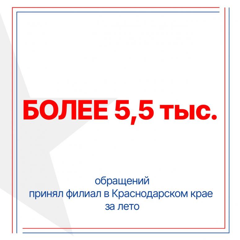 За лето в филиал Государственного фонда «Защитники Отечества» в Краснодарском крае обратились более 5,5 тыс. человек.