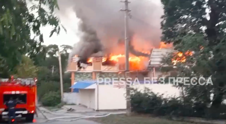 Пожарные выехали по адресу в 18:50, прибыли на место и установили, что горит жилой частный дом. Как уточняется в Telegram-канале "Pressа без пресса", который опубликовал видео с места ЧП, это здание частной гостиницы, постояльцев из неё эвакуировали.