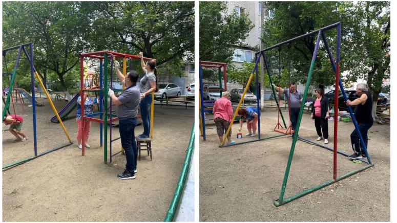 Порядок навели на придомовой территории по улице Новокузнечной, 127. Была убрана детская площадка, игровое оборудование и ограждения покрасили, а почву вокруг деревьев и кустов взрыхлили.