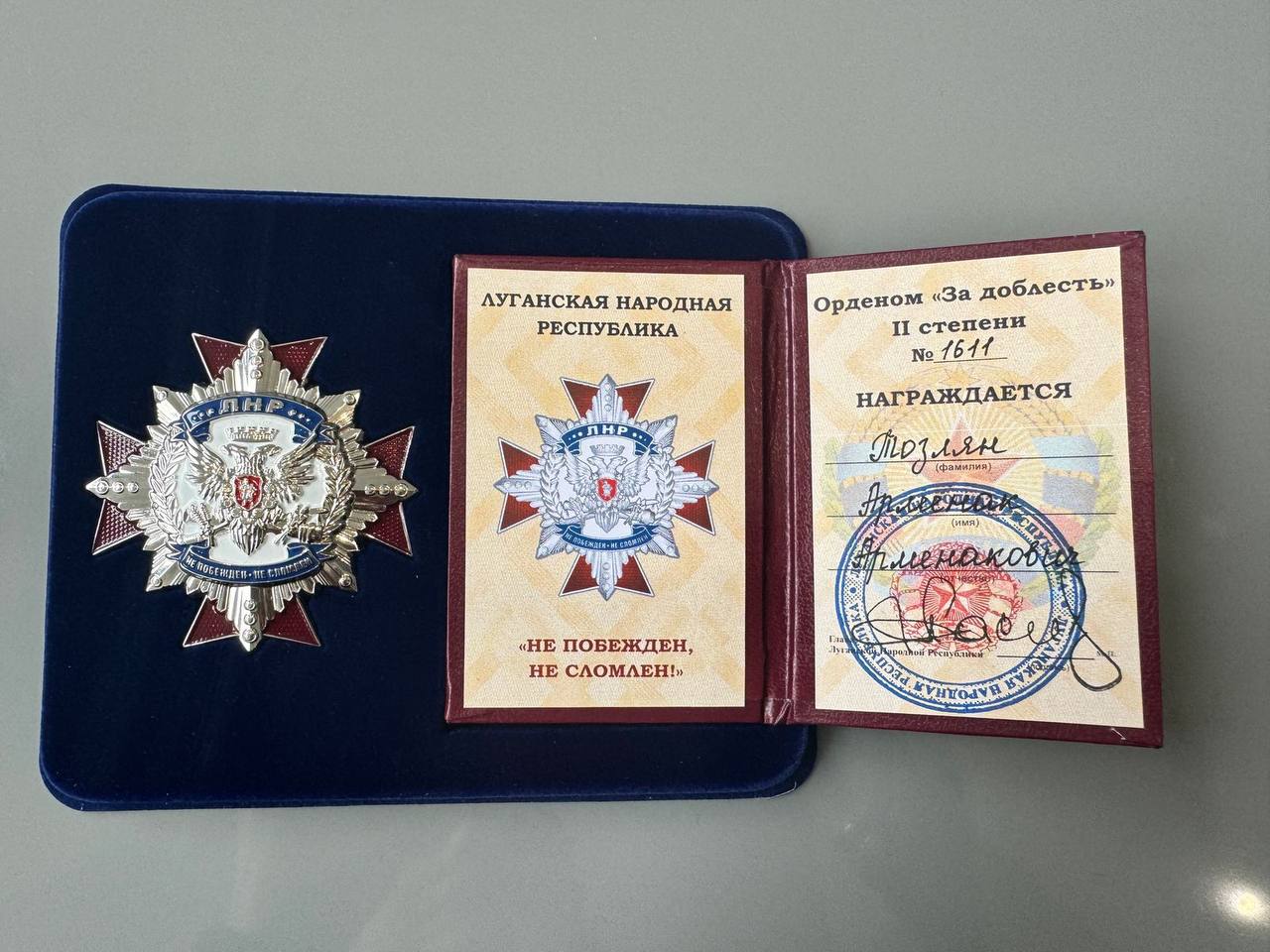 Глава ЛНР Леонид Пасечник вручил орден “За доблесть” II степени депутату ЗСК Арменаку Тозляну. Награду парламентарию передали бойцы отряда “БАРС-16”.