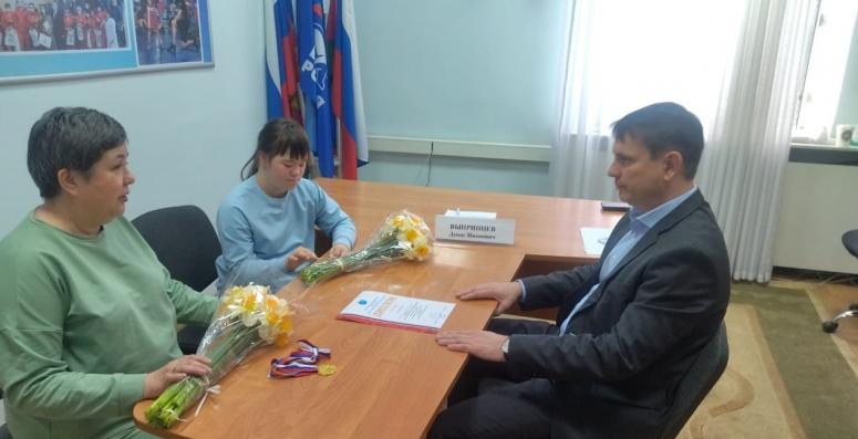 Депутат ЗСК Денис Выпринцев поздравил спортсменку с победой на Всероссийских соревнованиях по настольному теннису