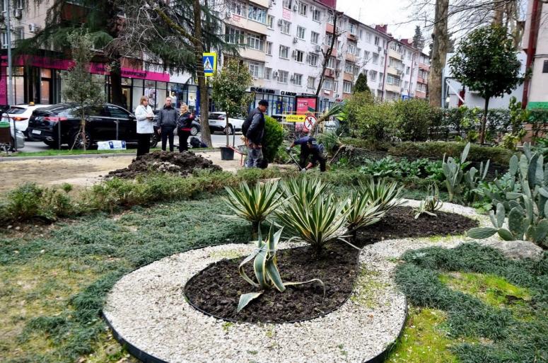 Депутат ЗСК Виктор Тепляков вместе с замдиректора департамента по охране окружающей среды администрации Сочи Еленой Глебчук побывали в зеленом уголке возле Дома архитекторов на улице Воровского. Там сейчас идет комплексное благоустройство.