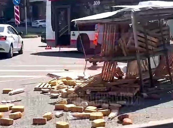 Десятки буханок хлеба оказались на дороге после ДТП с троллейбусом в Краснодаре