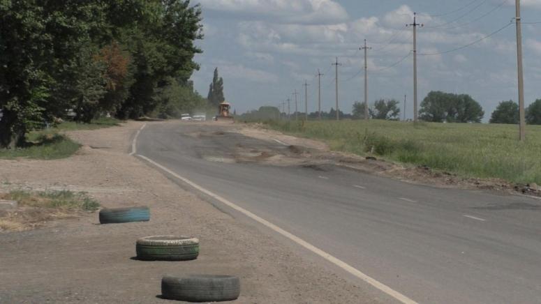 Дорога между хутором и станицей оказалась в огромных ямах из-за тяжелых грузовых автомобилей, которые перевозят строительные материалы.