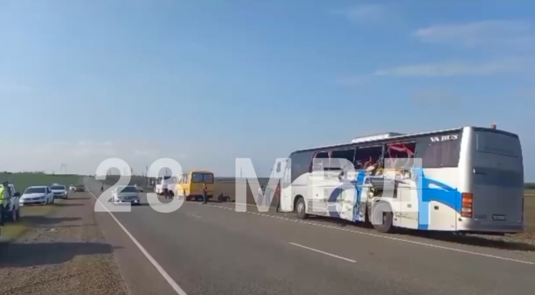 Авария произошла около 5 часов утра в субботу, 15 июля, в районе 91-го км трассы Краснодар – Ейск. По предварительным данным, водитель зерновоза MAN выехал на полосу встречного движения и столкнулся с рейсовым автобусом Тула – Анапа.