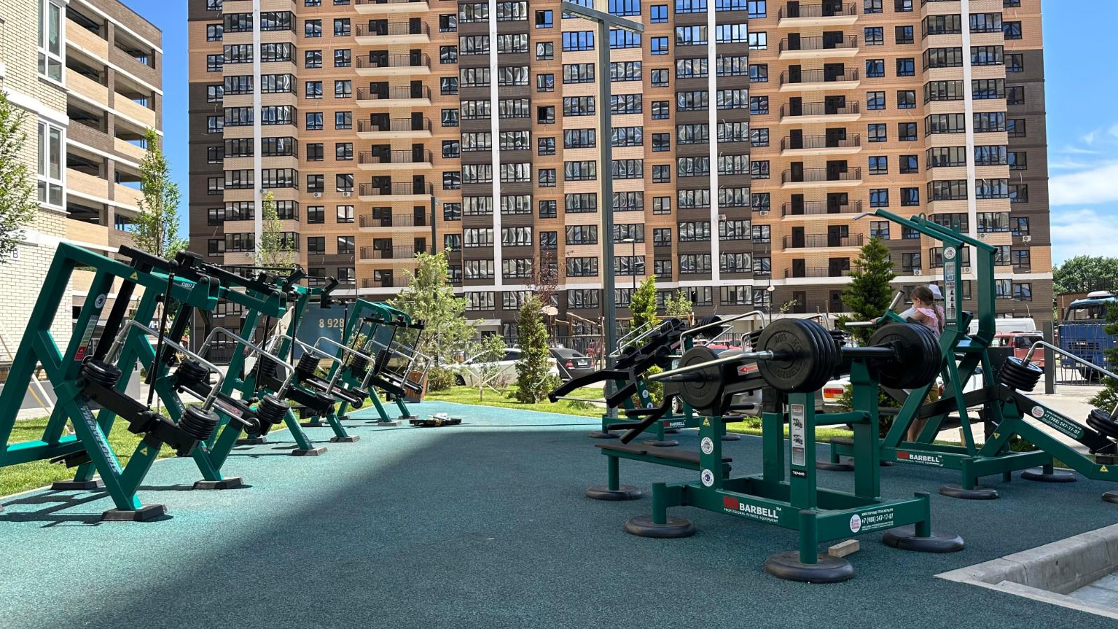 Площадка расположена в ЖК «Абрикосово», ее площадь составляет 90 кв. м. На площадке установлены прочные профессиональные тренажеры, которыми могут пользоваться все жители, в том числе с инвалидностью. Застройщик оборудовал удобный и безопасный подъем к площадке – для людей на колясках построены плавные пандусы. Качественное резиновое покрытие площадки обеспечивает защиту от травм.