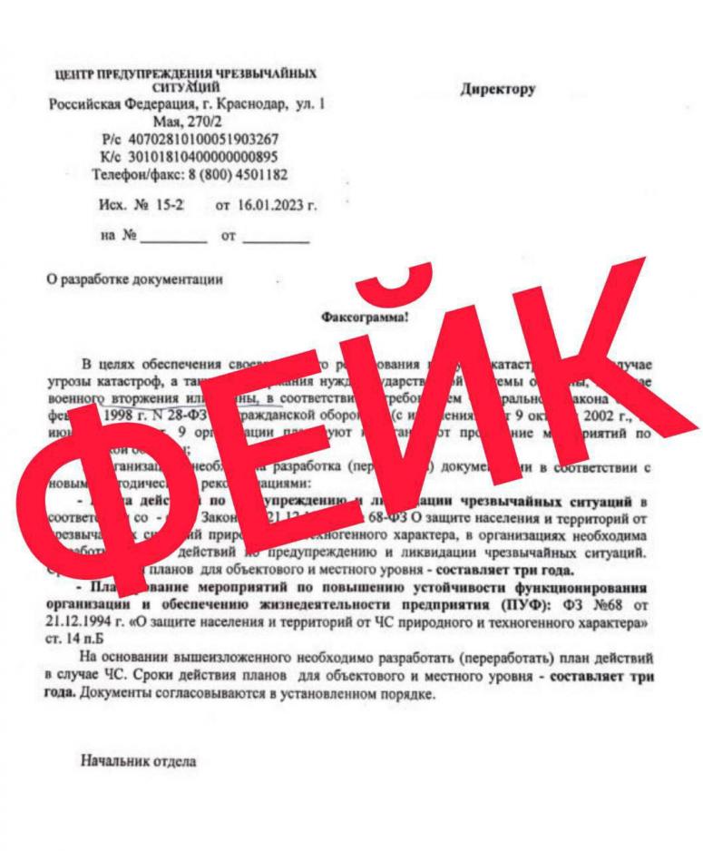 «Авторы поста распространяют фейковую информацию. Это провокация и очередной вброс, чтобы посеять панику среди жителей Кубани. На самом деле такой организации (той, что значится в «липовой» факсограмме, – «Югополис») в Краснодарском крае не существует. По указанному в шапке фальшивого письма адресу находится жилой дом. Да и само фейковое письмо составлено с грубыми ошибками», — говорится в сообщении оперштаба.