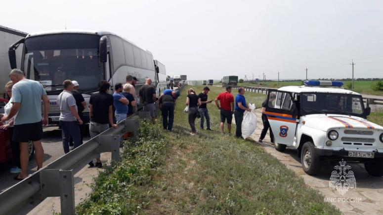 Спасатели начали подвозить воду водителям, которые с ночи 23 июня стоят в пробках на федеральной трассе М-4 «Дон» по направлению к Ростову, сообщили в правительстве Ростовской области.