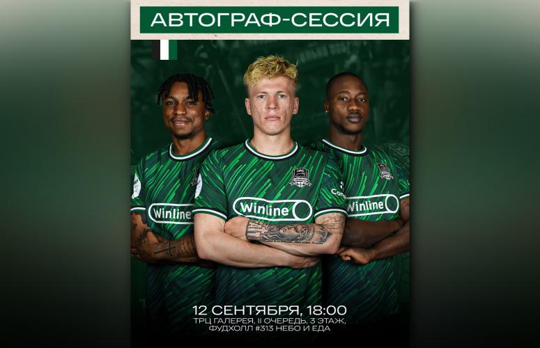Футбольный клуб «Краснодар» готовит автограф-сессию с игроками Никитой Кривцовым, Олакунле Олусегуном и Мозесом. Мероприятие пройдёт во вторник, 12 сентября, в ТРЦ «Галерея» в фудхолле #313 (вторая очередь, третий этаж). Начало – в 18:00, сообщили в пресс-службе клуба.