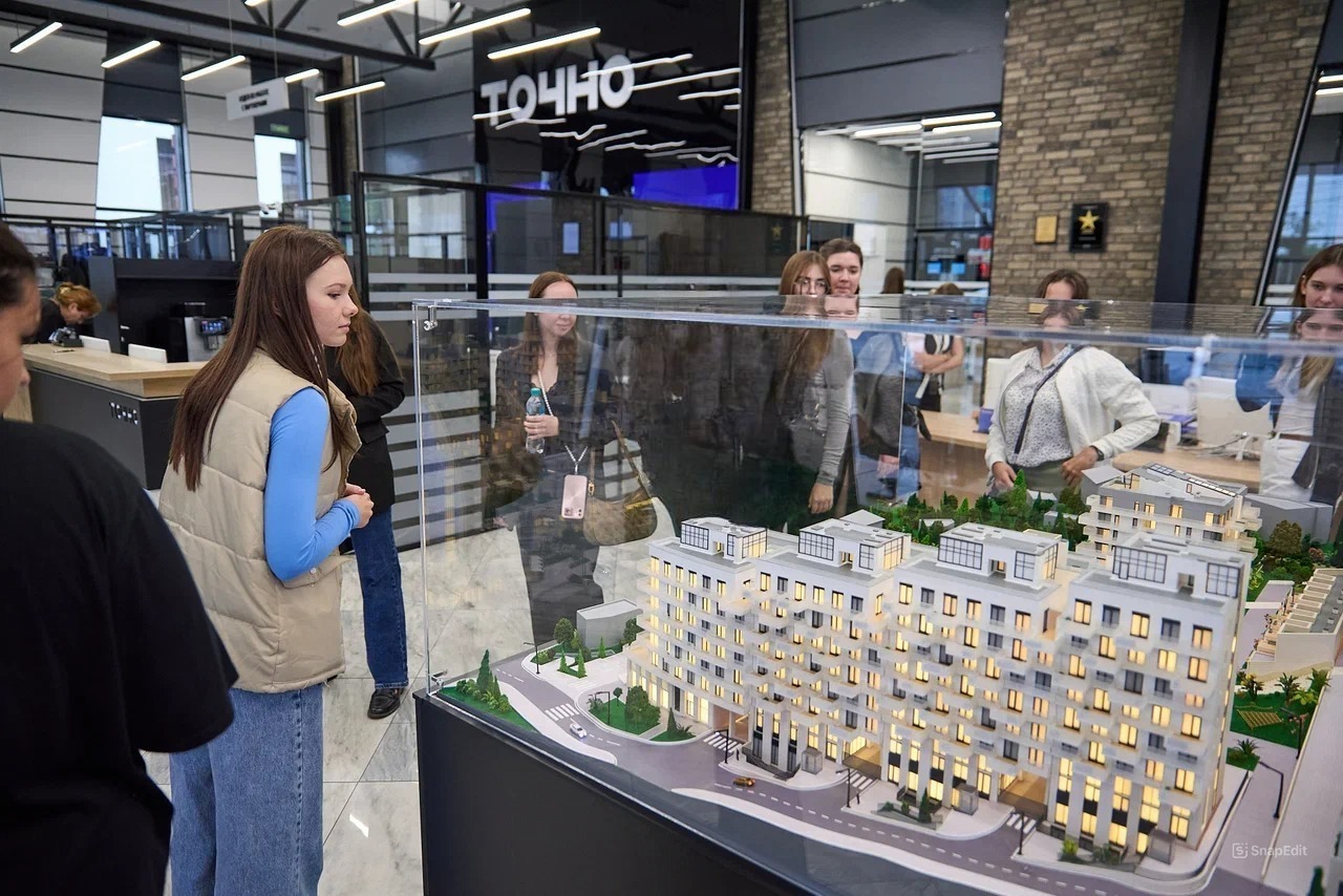 «День с предпринимателем» прошёл в головном офисе ГК ТОЧНО и включал в себя насыщенную программу: просмотр фильма о компании, лекции экспертов, а также экскурсии на объекты девелопера. Молодые люди смогли увидеть, как реализуются масштабные проекты в сфере строительства.