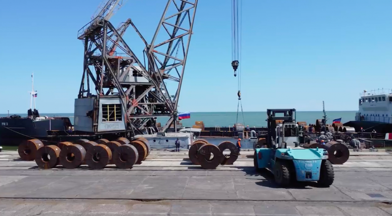 28 мая российское судно зашло в порт Мариуполя в первый раз с начала боевых действий. В своём Telegram-канале 31 мая Пушилин написал, что "сегодня 2500 тонн рулонов горячекатаного листа вышли из Мариупольского порта, судно направилось в Ростов".