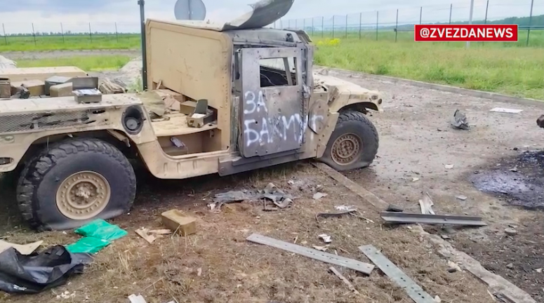 Телеканал "Звезда", подведомственный Минобороны РФ, опубликовал видео, как утверждается, "с места уничтожения диверсионно-разведывательной группы ВСУ" в Белгородской области. На кадрах - уничтоженная бронетехника и сгоревший пикап с надписью "За Бахмут".