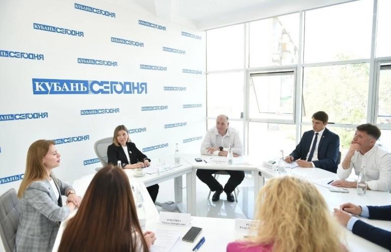 Круглый стол был посвящён теме развития и популяризации спорта на Кубани. На встречу была приглашена олимпийская чемпионка, депутат ЗСК, председатель Олимпийского совета края Ирина Караваева.