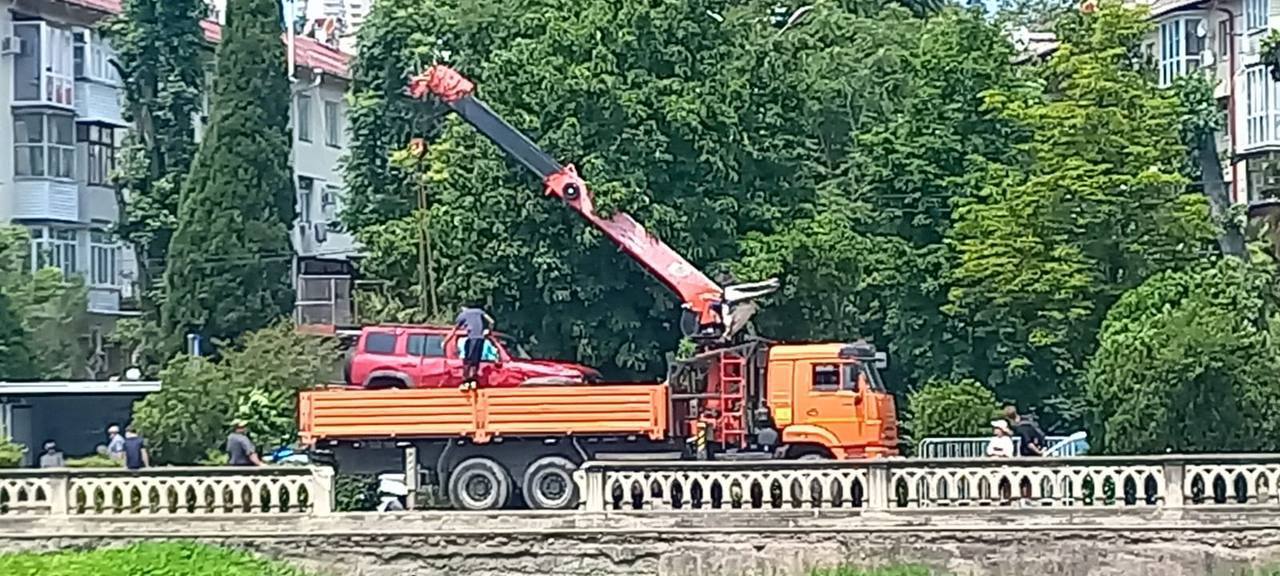 13 июня из реки Сочи подняли упавшую туда накануне иномарку. Для извлечения машины из русла реки пришлось применить спецтехнику.