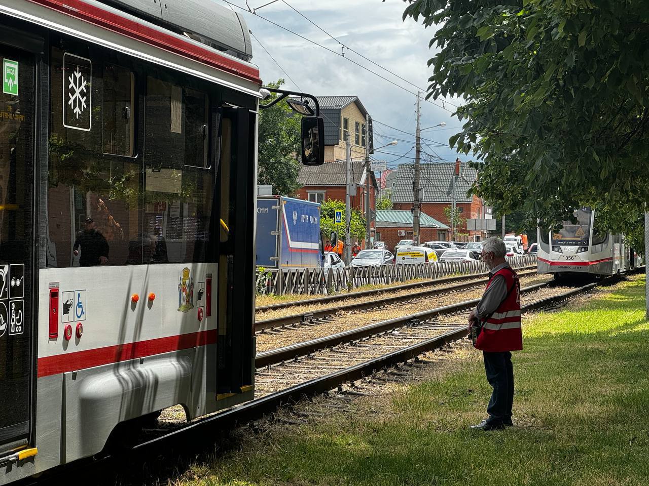 В Юбилейном микрорайоне Краснодара днем 15 июля остановился общественный транспорт. Из-за аварии на сетях невозможно проехать по улицам Славянской, Каляева, Калинина, Петра Метальникова. Трамваи 5-го, 8-го и 15-го маршрутов временно следуют через улицу Колхозную.