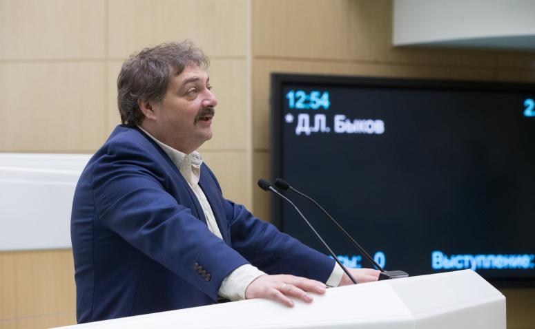 Дмитрий Быков* выступает на заседании Совета Федерации, 2017 год