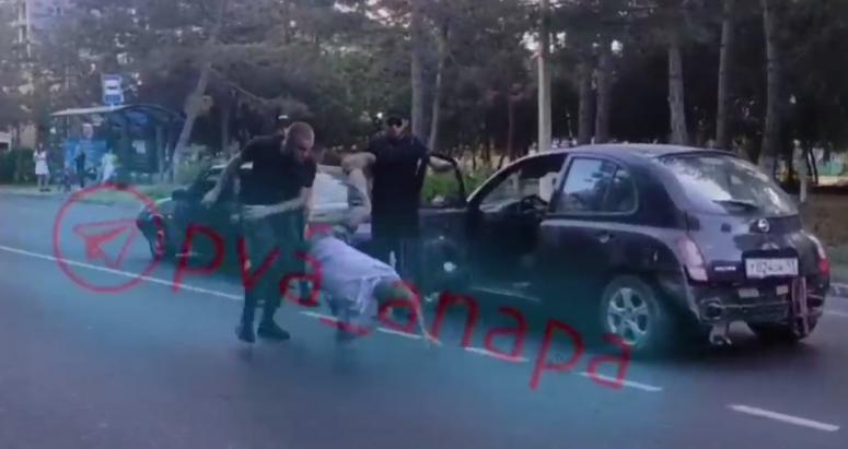 В Анапе на Пионерском проспекте водитель иномарки стал жертвой охранников. Видео произошедшего конфликта разошлось по социальным сетям.