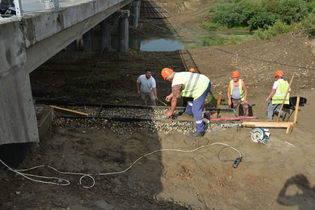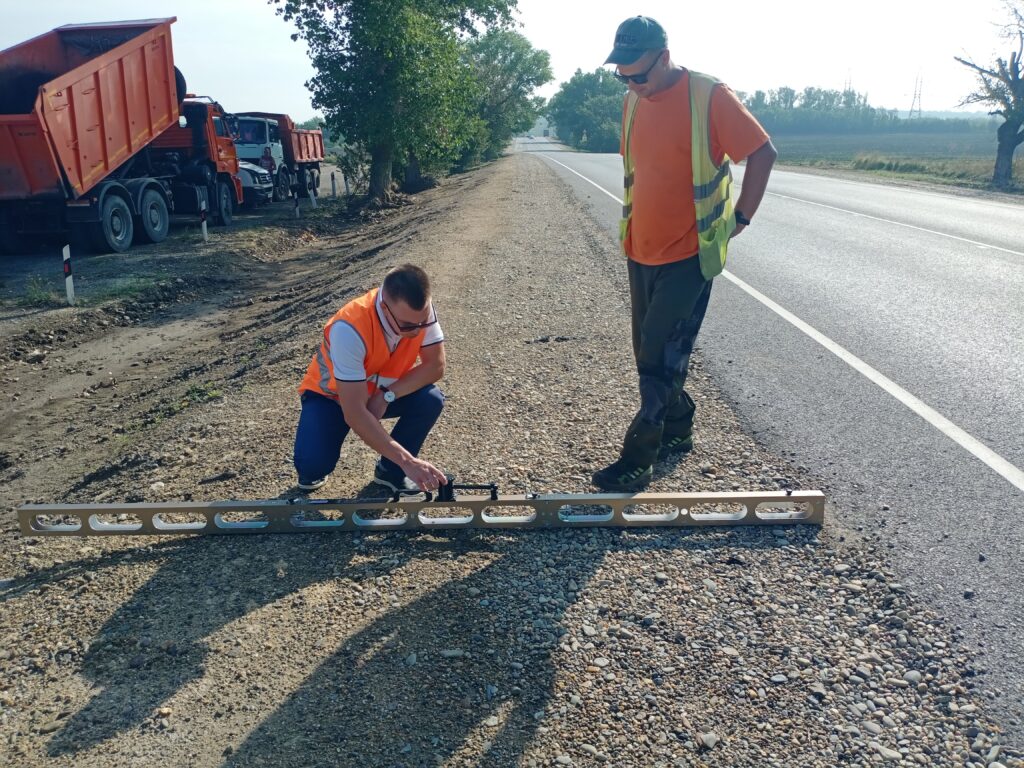 За разговором не заметили, как подъехали к строящемуся мосту на автодороге «Андреева гора». Как только приехали, руководитель Новороссийского дорожного филиала быстро достал из багажника резиновые сапоги и переобулся. Взял рабочую рейку для проверки правильности установки водоотводной системы, как он нам объяснил. Познакомил нас с дорожниками, выполняющими работу, и тут же взялся за дело: смотрел, измерял, задавал вопросы.