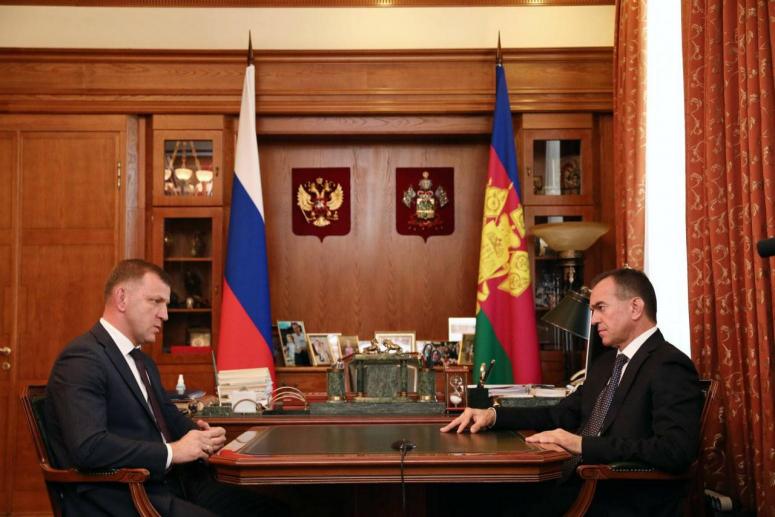 Губернатор Кубани Вениамин Кондратьев 19 октября провел встречу с Евгением Наумовым, который в настоящее время является вице-губернатором Краснодарского края и подал документы на участие в конкурсе на должность главы Краснодара.