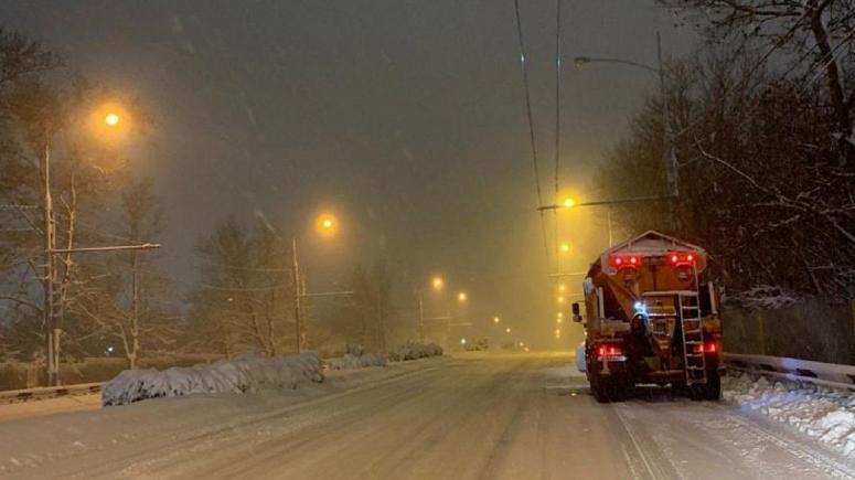 Последствия ливневого снегопада, продолжавшегося всю ночь с 22 на 23 января, устраняют сотрудники городской службы спасения. Они оказывают помощь водителям авто, застрявшим в снегу, убирают упавшие под тяжестью налипшего мокрого снега ветки и стволы деревьев.