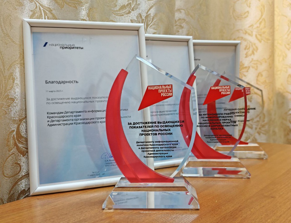 Краснодарский край стал лучшим регионом по освещению национальных проектов. На федеральном уровне отметили работу кубанских специалистов в достижении выдающихся показателей и по информированию населения о мерах национальных проектов России в широкоохватных каналах.