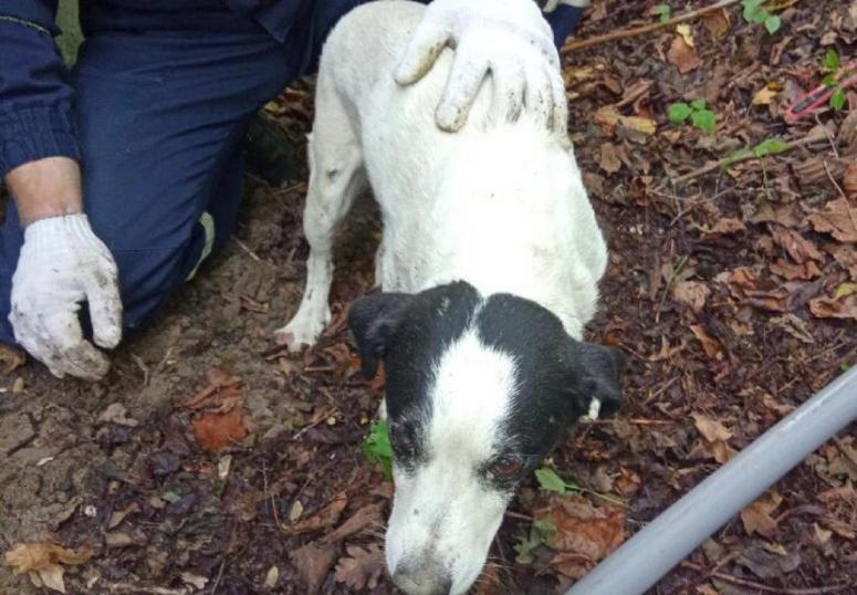 О терпящей бедствие собаке спасателям сообщили жители домов, расположенных на улице Туапсинской. Животное провалилось в ливневый слив и просидело в заточении около четырех дней. Дежурная смена прибыла на место вызова и обнаружила собаку на дне узкого колодца высотой более двух метров.