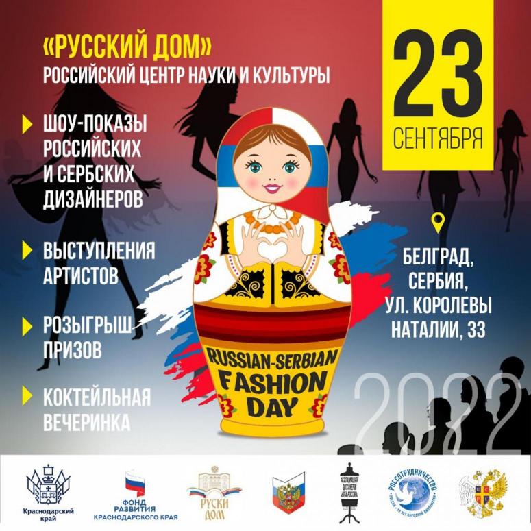 Дизайнеров одежды и модельеров из Краснодарского края приглашают принять участие в российско-сербском модном показе Russian-Serbian Fashion Day. Мероприятие состоится в столице Сербии Белграде 23 сентября в рамках бизнес-миссии российских предпринимателей, которую организовал Фонд развития Краснодарского края.