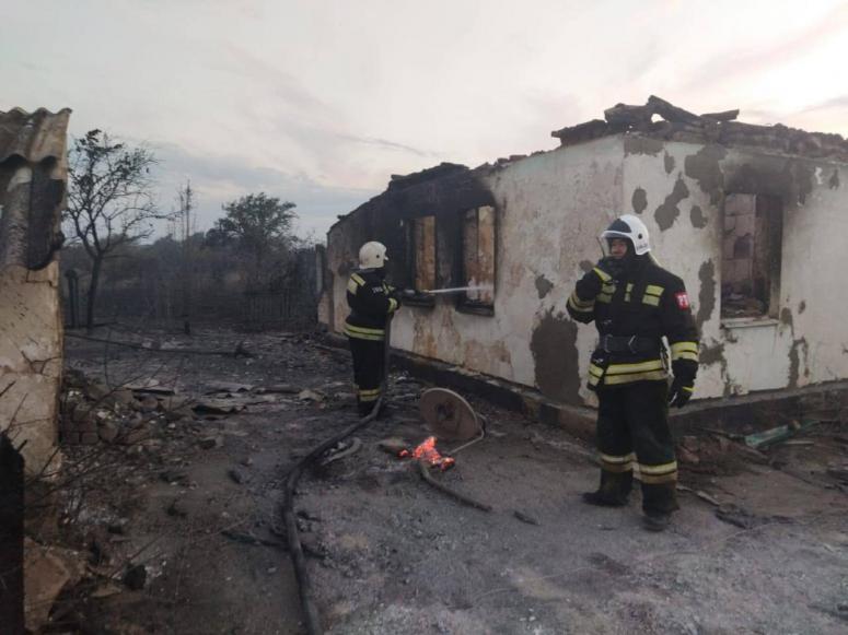 По траве огонь от сена по траве перешел на постройки. По данным областного МЧС, ландшафтный пожар уничтожил пять частных домов (два - полностью, три - частично), два легковых автомобиля и один грузовой автомобиль с прицепом. Сегодня, 15 августа, в районе работает оценочная комиссия, которая должна установить причиненный людям ущерб.