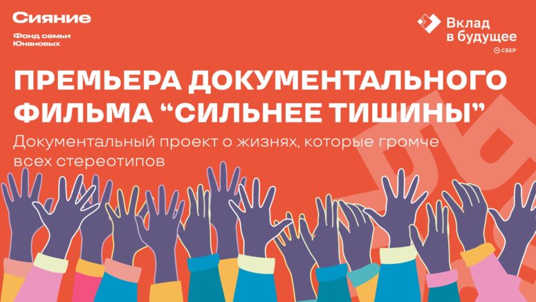 «Благотворительный фонд семьи Юнановых «Сияние» приглашает всех желающих на премьеру документального фильма «Сильнее тишины», которая состоится 19 октября в 16:00 в культурном пространстве «Бронзовая лошадь» (ул. Калинина, д. 291). Это не просто показ — это уникальное событие, меняющее восприятие инклюзии и жизни людей, которые сталкиваются со стереотипами.