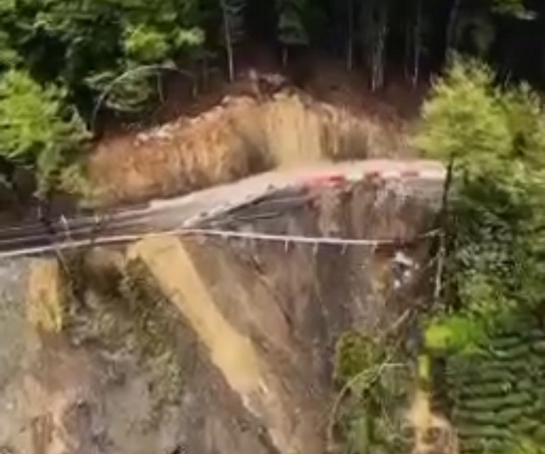 В Сочи сняли на видео последствия масштабного оползня, сошедшего в районе села Измайловка в декабре 2024 года. На кадрах, разошедшихся по социальным сетям, видно, что часть склона рухнула вниз, утащив за собой дорожное полотно.