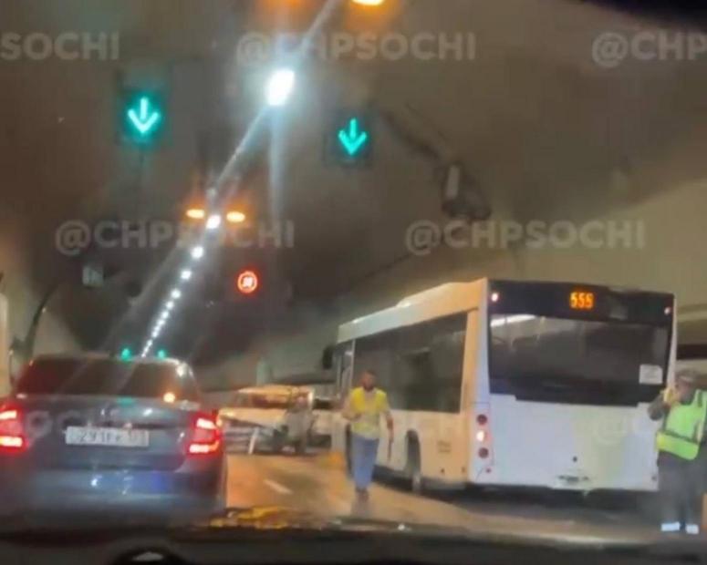 Утром 3 октября в первом тоннеле по направлению от Раздольной в сторону Сочи произошло массовое ДТП с участием сразу трех автомобилей, в том числе автобуса. Об инциденте сообщил Telegram-канал «ЧП Сочи».