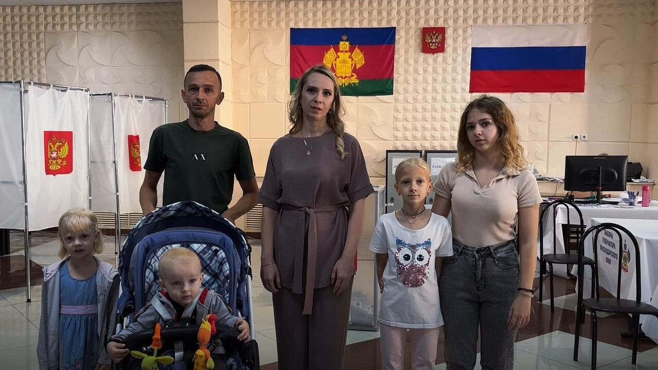 Многодетная мать с семьёй проголосовала на выборах губернатора в Краснодаре