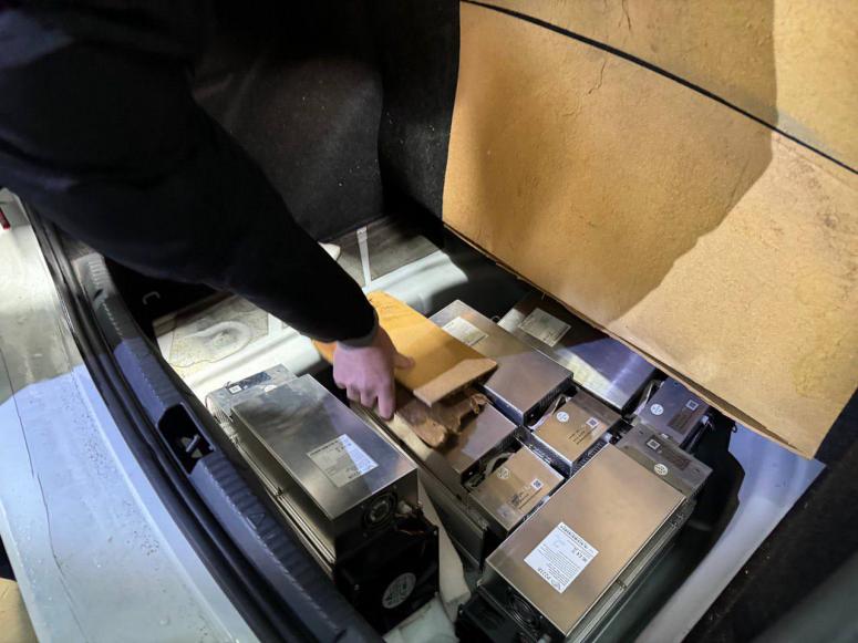 В багажнике, в нише для запасного колеса таможенники обнаружили пять металлических коробок с блоками питания. Есть основания полагать, что это системы для майнинга криптовалюты.