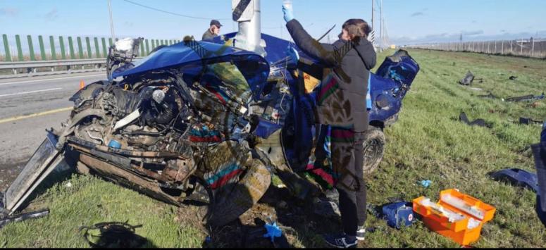 По данным Госавтоинспекции Кубани, водитель автомобиля Hyundai, ехавший в сторону Ростова-на-Дону, превысил скорость движения. Автомобиль вылетел с трассы и буквально расплющился об опору ЛЭП, в которую врезался.