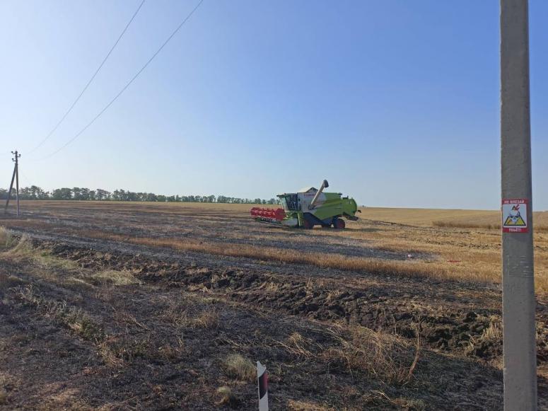 От удара током в поле начался пожар, но хлеборобам удалось его погасить своими силами. По предварительным данным огонь уничтожил около гектара посевов пшеницы, сообщает Telegram-канал «Авторадио Кущевская».