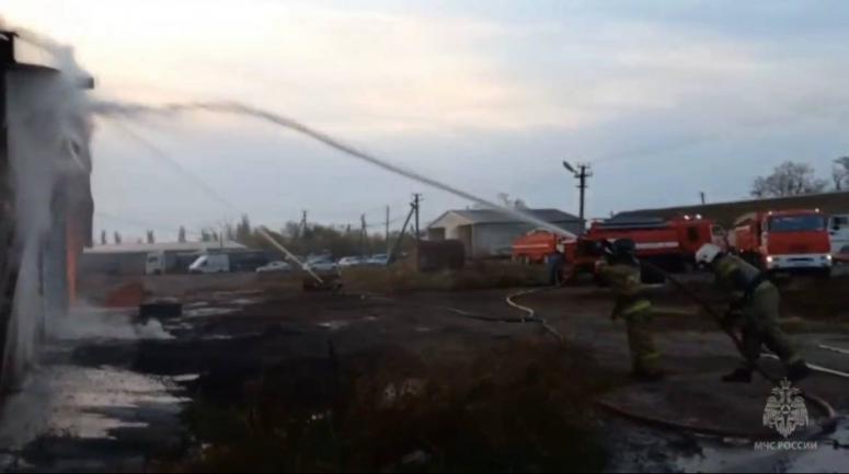 Тушение ангара с сельхоз продукцией в Ейском районе