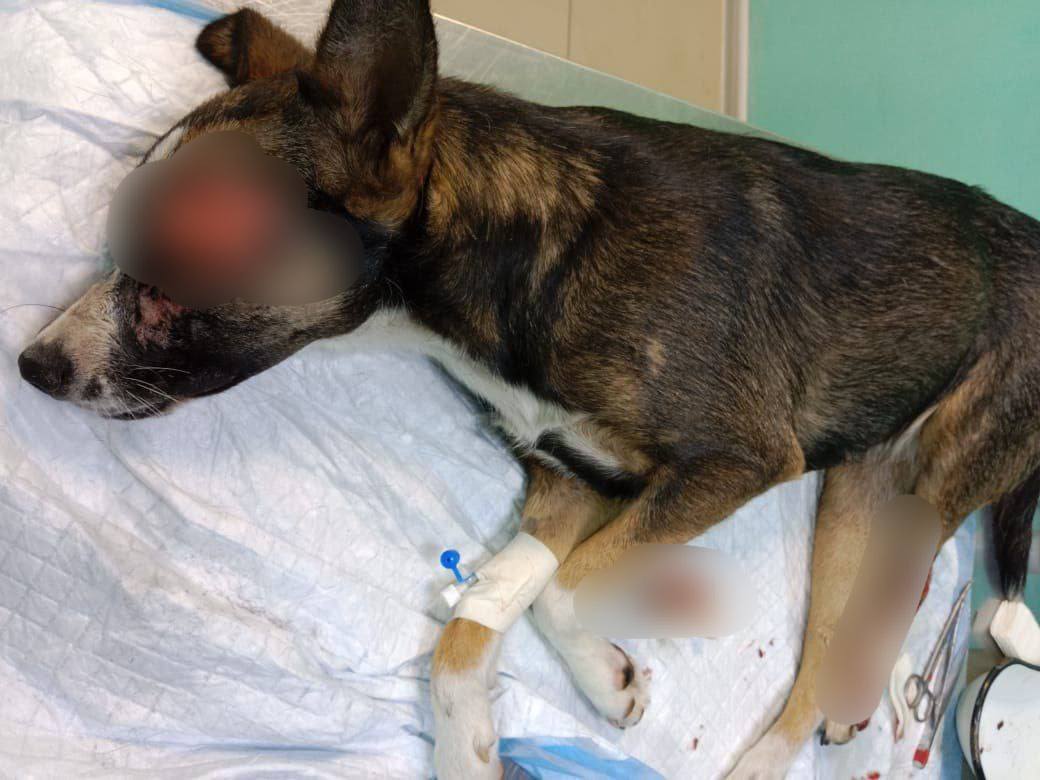 В последний раз, около 12 дней назад, собаку мучали несколько часов. Волонтеры смогли забрать пострадавшее животное и отвезти в ветклинику. Лечение проходит тяжело.