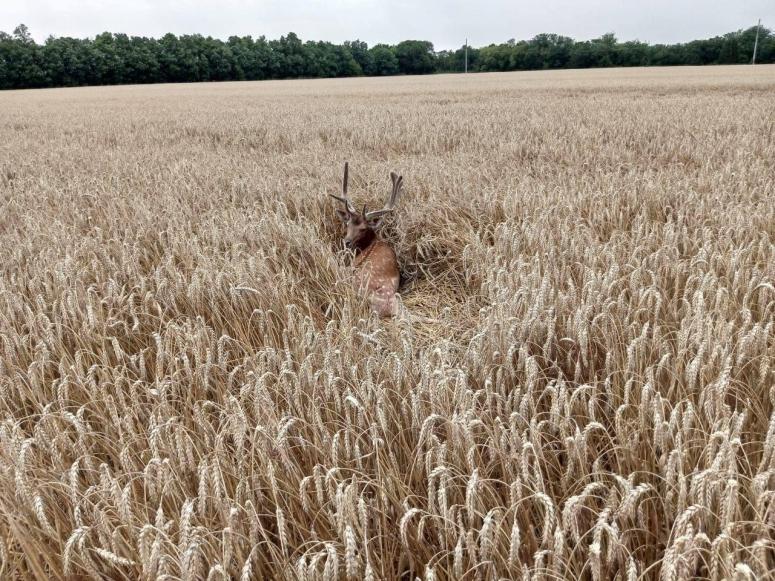 Лань получила серьезные травмы и отползла в поле. Дальше передвигаться она не смогла из-за ранений. Специалисты «Краснодаркрайохоты» и ветслужбы принимают все возможные меры для спасения животного.