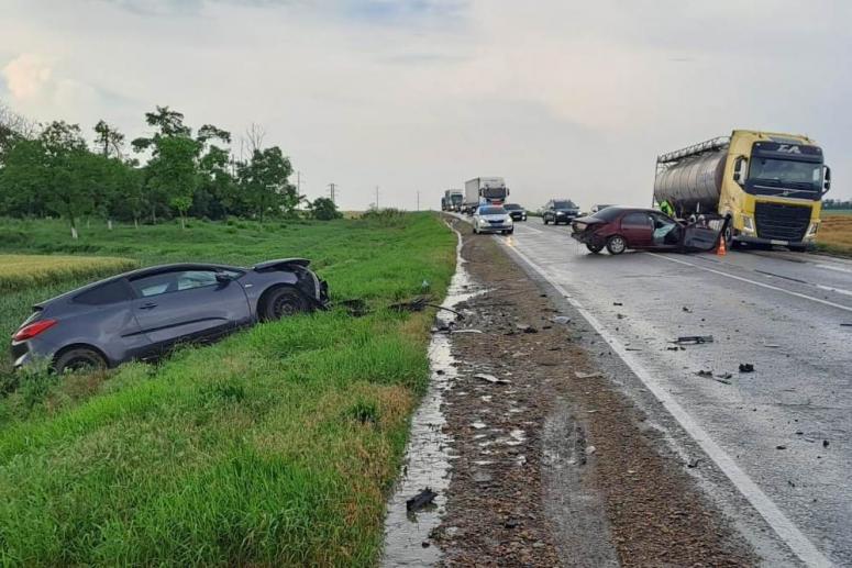 В Каневском районе вечером в воскресенье, 18 июня, произошла авария на трассе Стародеревянковская - Ленинградская - Кисляковская. По данным полиции, 19-летний водитель Kia Spectra во время обгона выехал на встречную полосу движения и столкнулся с Kia Ceed.