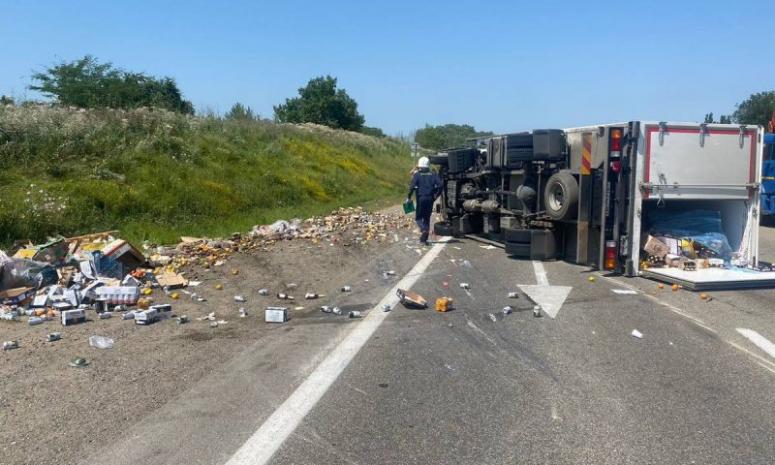 По предварительным данным ГУ МВД РФ по Краснодарскому краю, ДТП мог спровоцировать 60-летний водитель автомобиля Nissan: он нарушил правила движения и на нерегулируемом перекрестке врезался в грузовик Hyundai. Большегруз от удара вылетел на встречную полосу и столкнулся с фургоном. Оба грузовика перевернулись, на дорогу высыпались продукты, которые вез один из них.