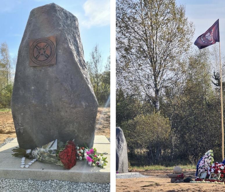 Памятник представляет собой камень с табличкой, на которой выбиты герб ЧВК «Вагнер» и лозунг «Кровь. Честь. Справедливость. Родина. Отвага». Информации о том, кто стал инициатором установки, нет.