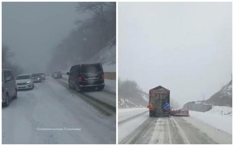 В Госавтоинспекции Геленджика рассказали, что снегоуборочная техника работает на дорогах непрерывно, но из-за обильных осадков не справляется. Характер погоды в ближайшее время не изменится.