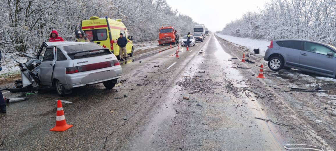 Утром во вторник, 26 ноября, в Усть-Лабинском районе Краснодарского края произошло смертельное ДТП. По информации полиции, водитель ВАЗ-2112 выехал на встречную полосу движения и врезался в Citroen.
