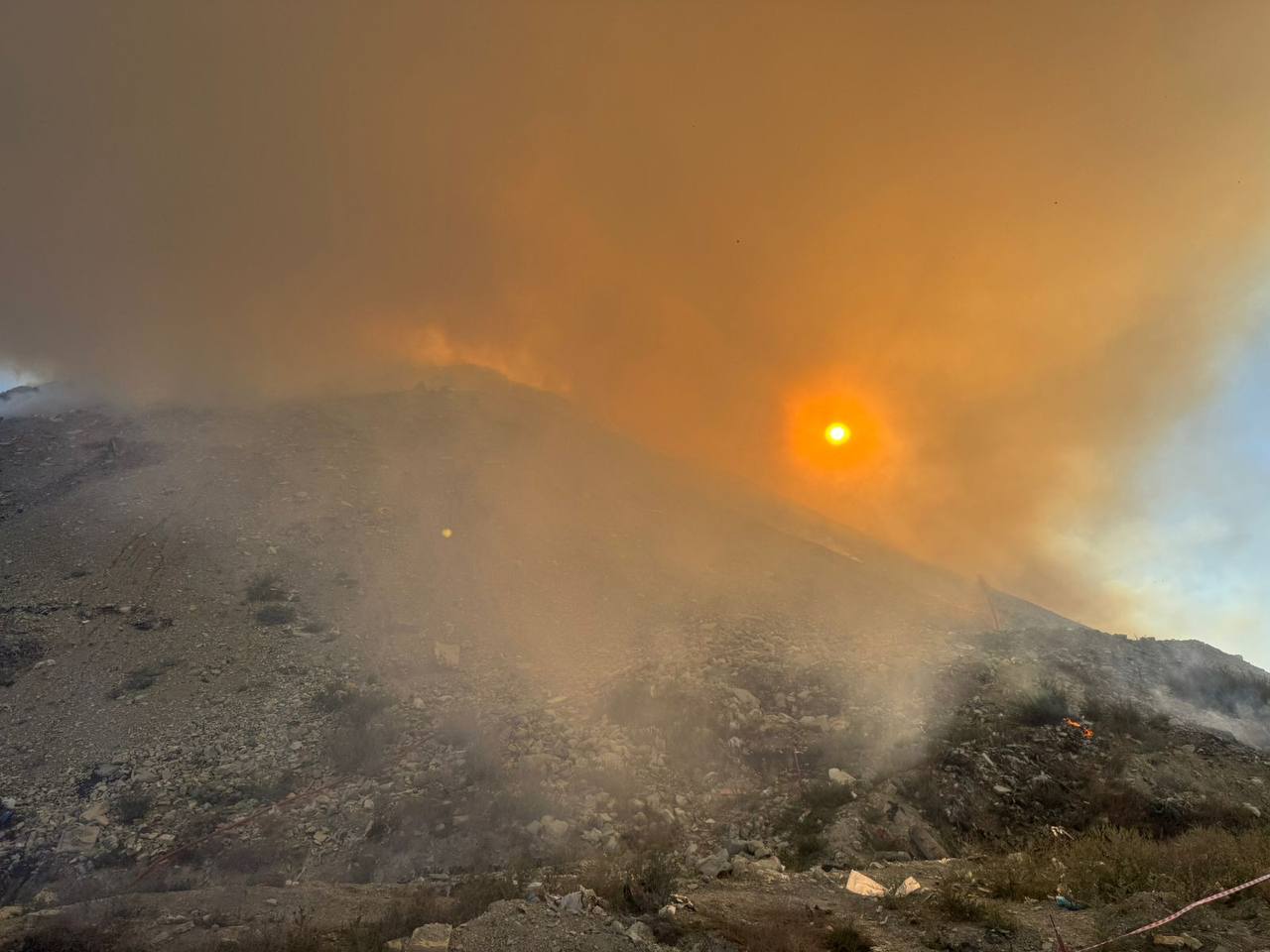 Пожар на мусорном полигоне на горе Щелба / t.me/mtsunvrsk